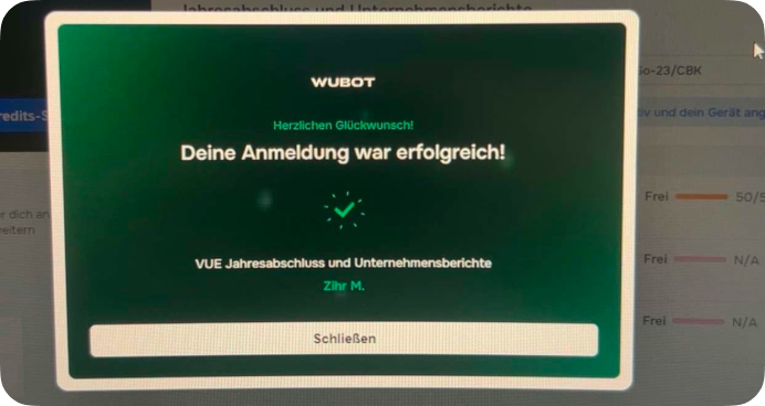 Nach dem Kauf einer WuBot-Lizenz bekommst du eine E-Mail mit einem Downloadlink und einer Anleitung. Nach dem Herunterladen und Eingeben deiner Anmeldedaten kannst du WuBot nutzen.